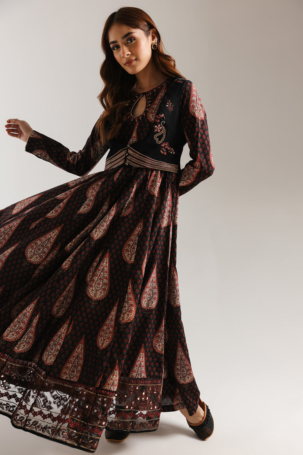 Elegant shirt featuring a flattering V-neck and full, flowing sleeves that move beautifully with every step. Paired with an off-white shalwar adorned with delicate embellishment along the edges, this suit combines timeless style with comfortable sophistication. Perfect for both casual gatherings and special occasions, the contrasting colors and detailed embroidery create a refined, put-together look that celebrates traditional craftsmanship.